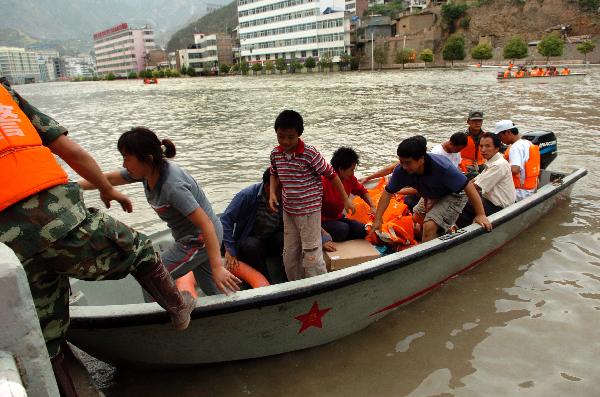 沖鋒舟為舟曲受災(zāi)群眾開辟水上通道