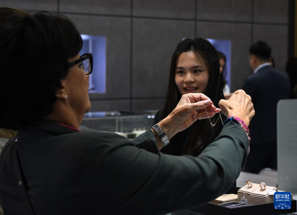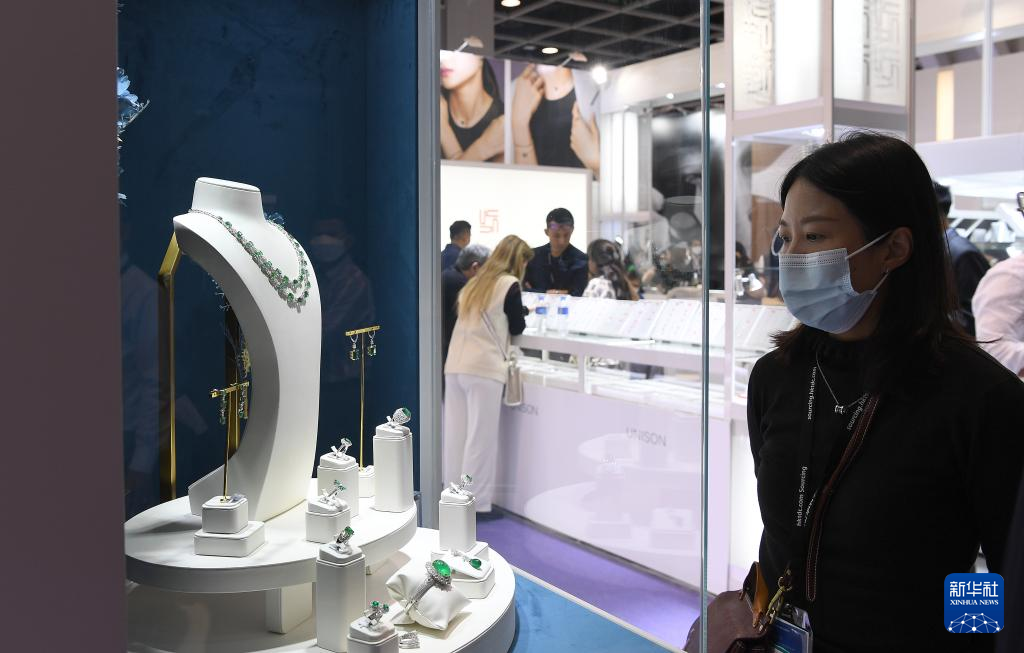 3月1日,参观者在珠宝展上挑选珠宝。