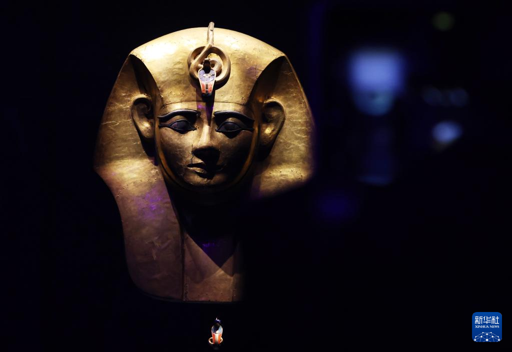 这是4月6日在法国巴黎拍摄的法老木质镀金面罩。