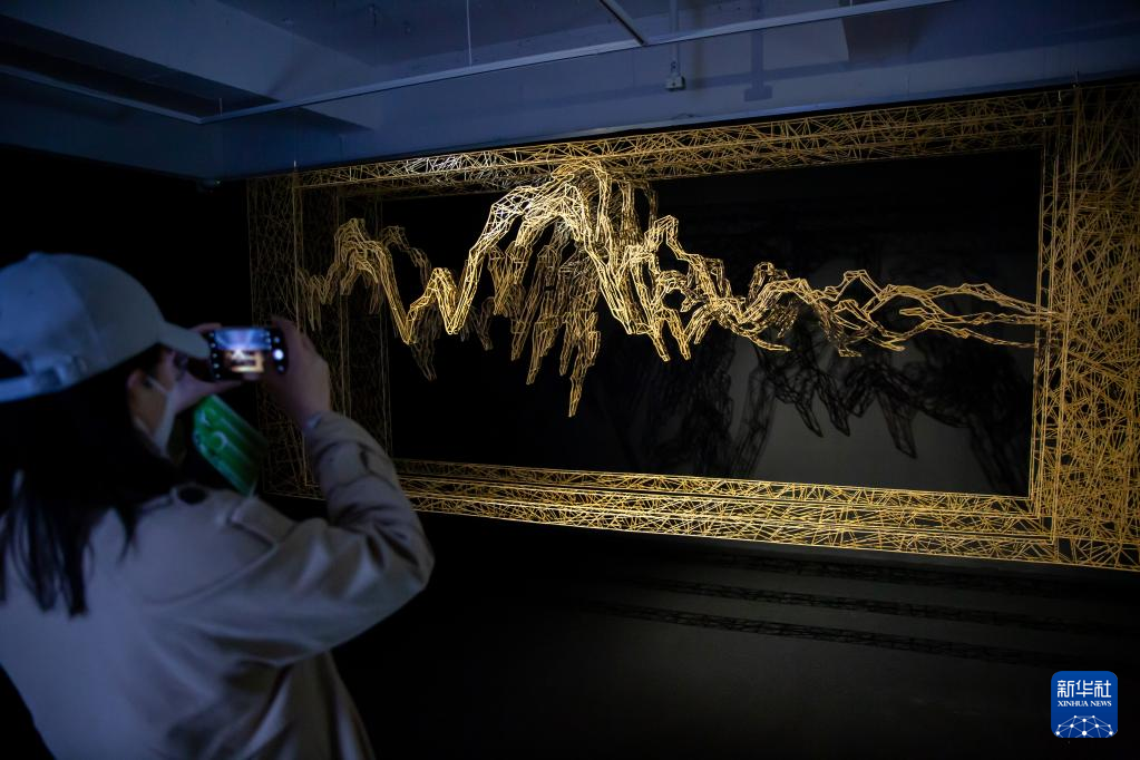4月7日,在韩国光州,参观者拍摄光州双年展中国馆的展品。