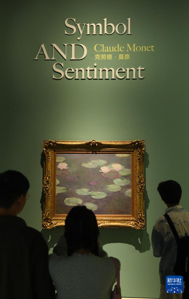 4月14日,观众参观克劳德·莫奈画作《粉色睡莲》。