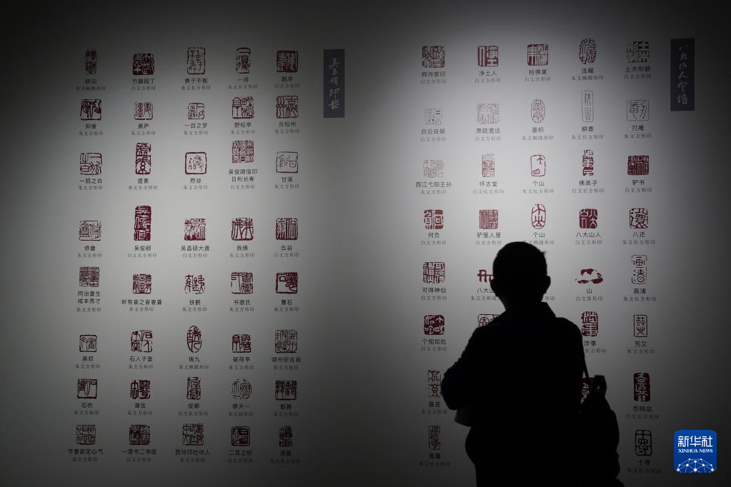 4月29日,观众在参观八大山人和吴昌硕的印章对比。