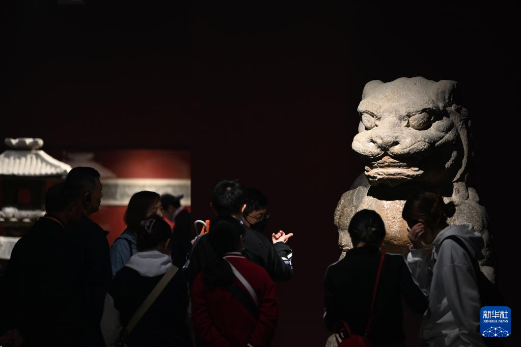 5月9日,游客在西安碑林博物馆内参观唐代石狮。古代中国的狮子多通过丝绸之路由外国进贡而来。