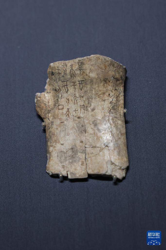 5月16日拍摄的“海岱日新——山东历史文化展”展出的商代干支表刻辞。