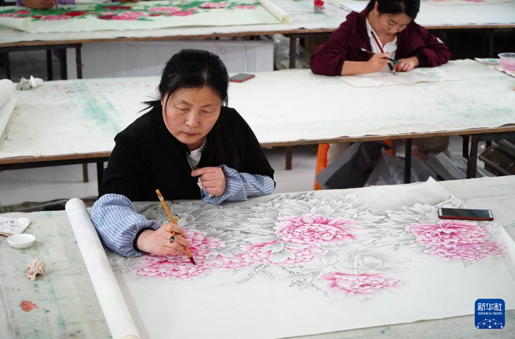 山东巨野:工笔牡丹画产业助力乡村振兴-新华网