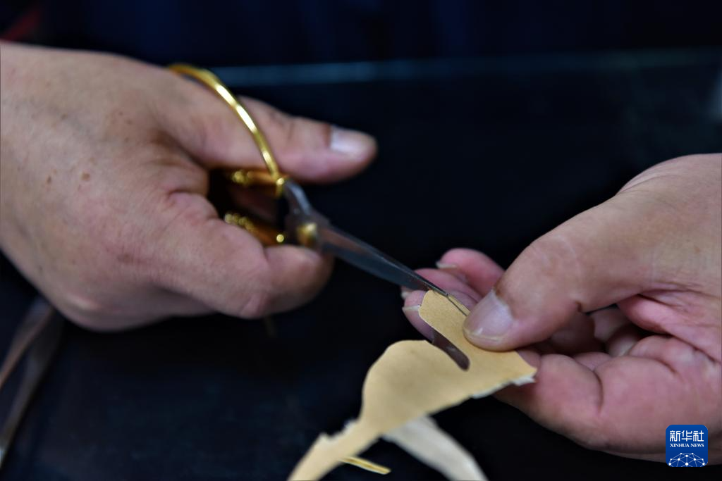 7月12日,吴永龙将细小的“零件”从麦秆做成的条片上剪下。