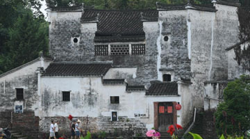 8月1日,工作人员从诸葛村一家民宿内走过。
