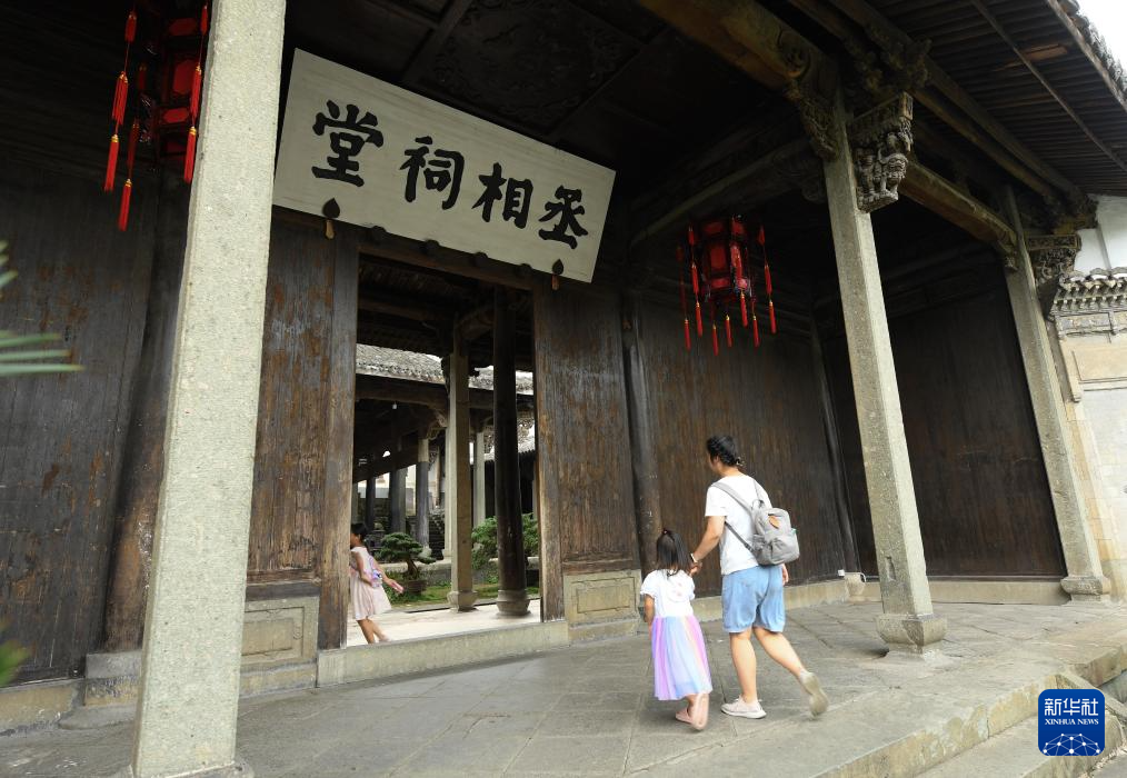 8月1日,游客在诸葛村丞相祠堂参观游览。