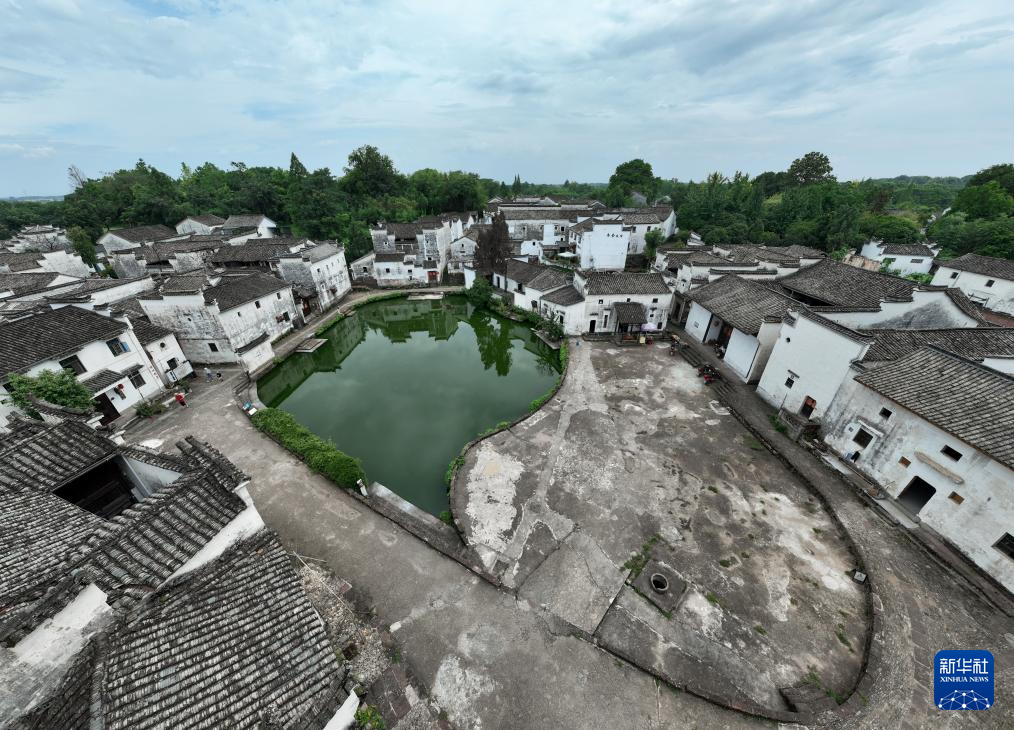 诸葛村一处八卦形的池塘(无人机照片,8月1日摄)。