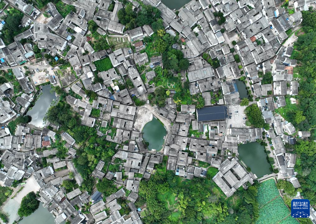 鸟瞰诸葛村(无人机照片,8月1日摄)。