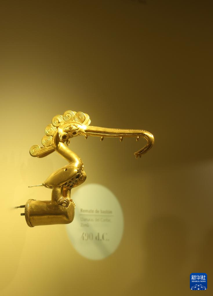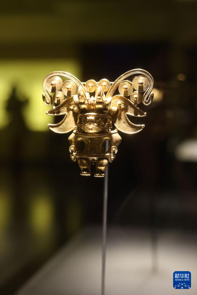 这是11月1日在哥伦比亚首都波哥大的黄金博物馆内拍摄的黄金制品。
