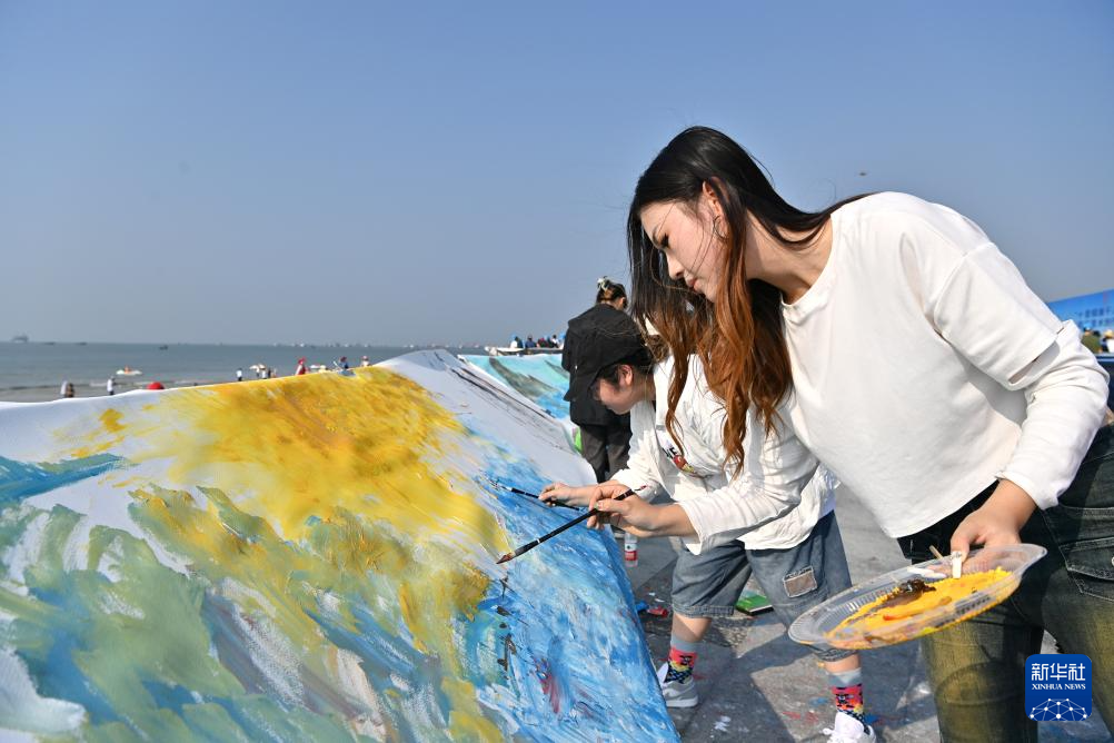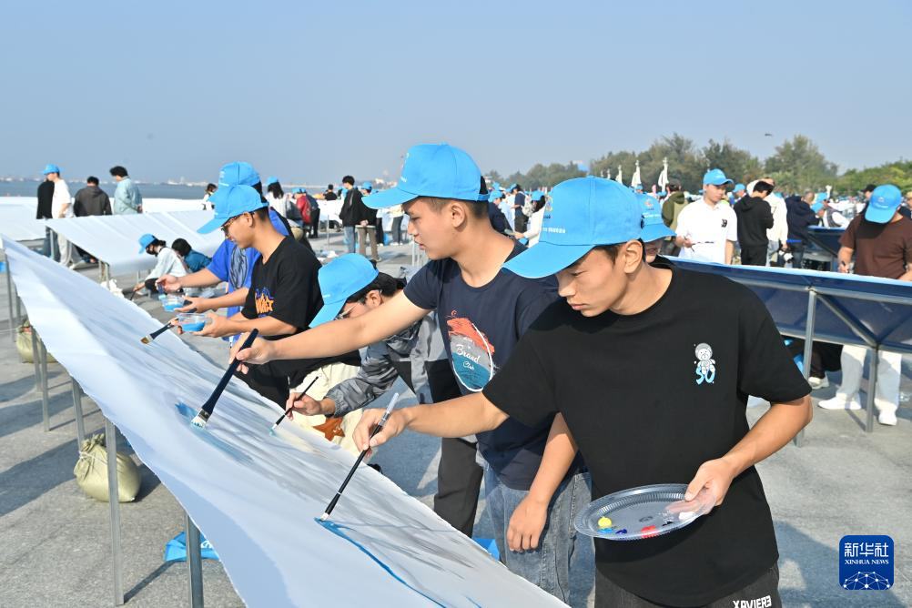 当日,“十里银滩千人共绘”现场美术创作活动在广西北海银滩国家旅游度假区举行。