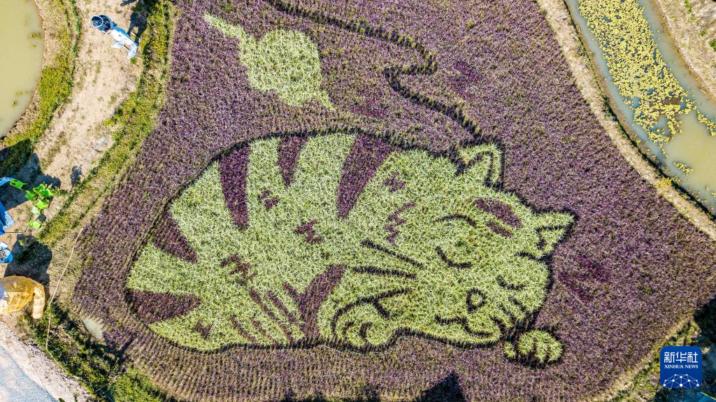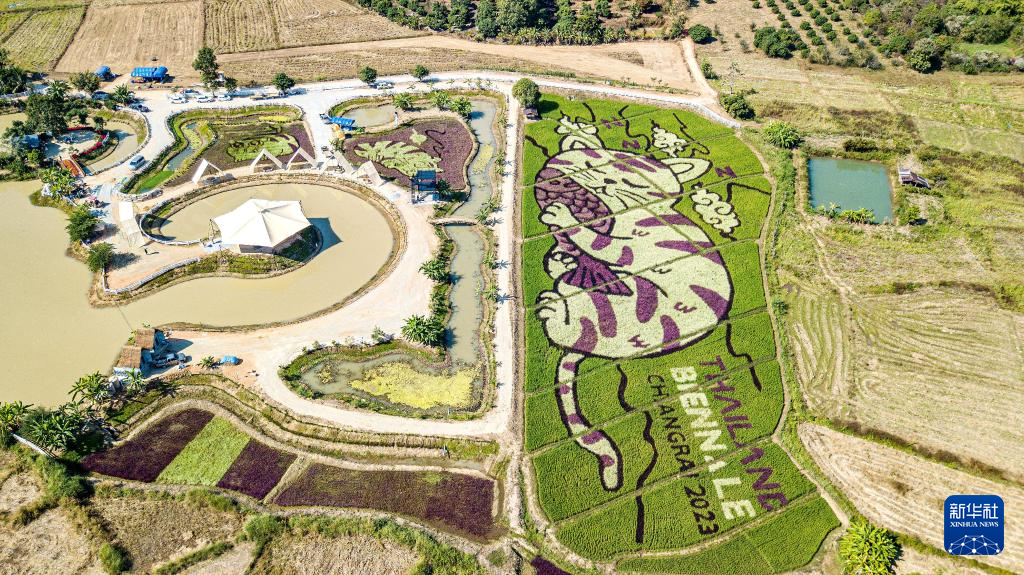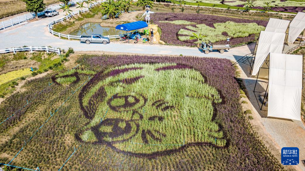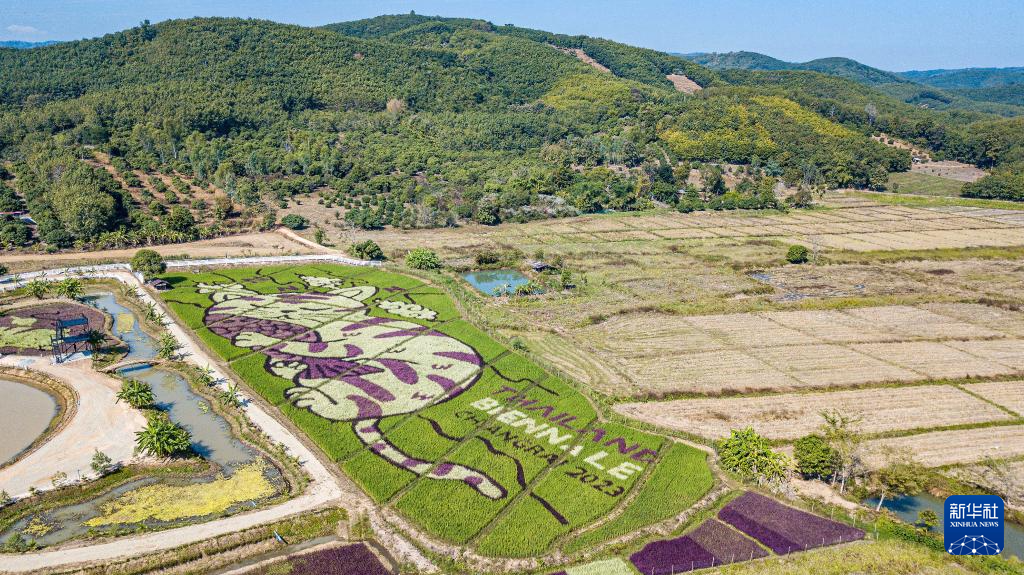 这是12月30日在泰国清莱拍摄的以猫为图案的巨型稻田画(无人机照片)。