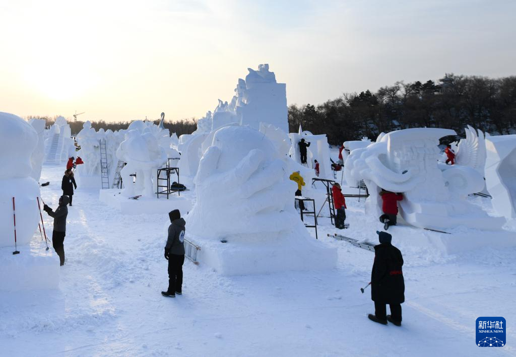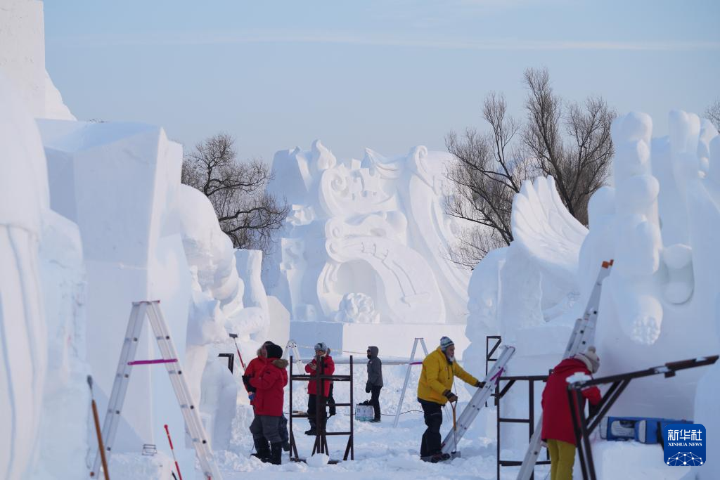 当日,在哈尔滨太阳岛雪博会园区内举行的第26届中国·哈尔滨国际雪雕比赛进入第三天的赛程。