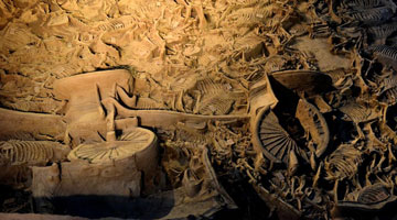 3月24日,人们在浙江自然博物院观看恐龙化石。