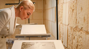 3月24日,家长带着孩子在浙江自然博物院感受陨石的重量。