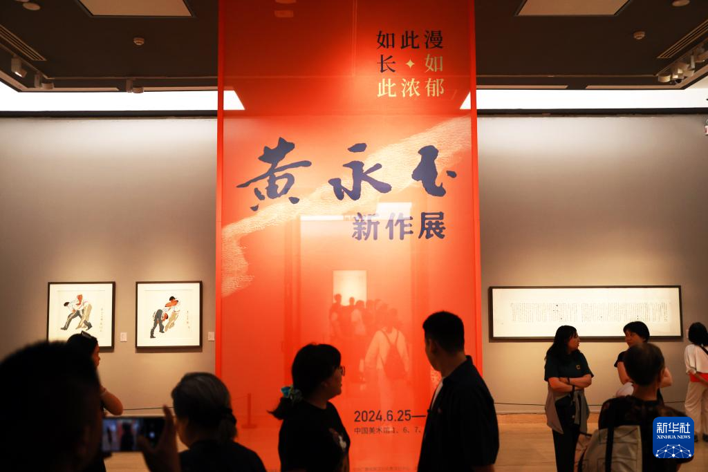 6月25日,参观者在“如此漫长 如此浓郁——黄永玉新作展”上参观。