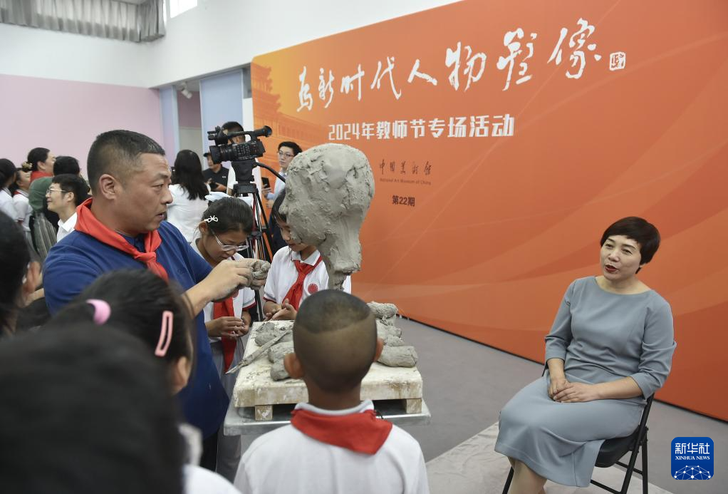 当日是教师节。中国美术馆举行活动,邀请雕塑家为优秀教师代表塑像,表达对教育工作者的敬意和教师节的祝福。