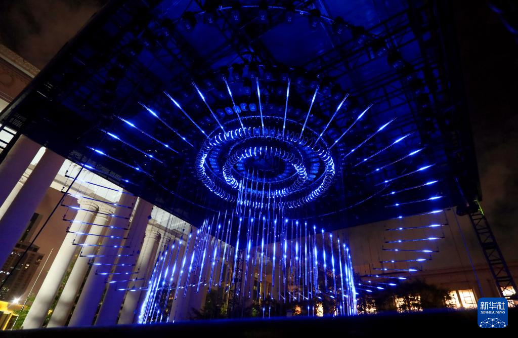 首届上海国际光影节将于9月19日拉开帷幕,18日晚在上海展览中心进行了光影节主会场灯光秀调试彩排工作。