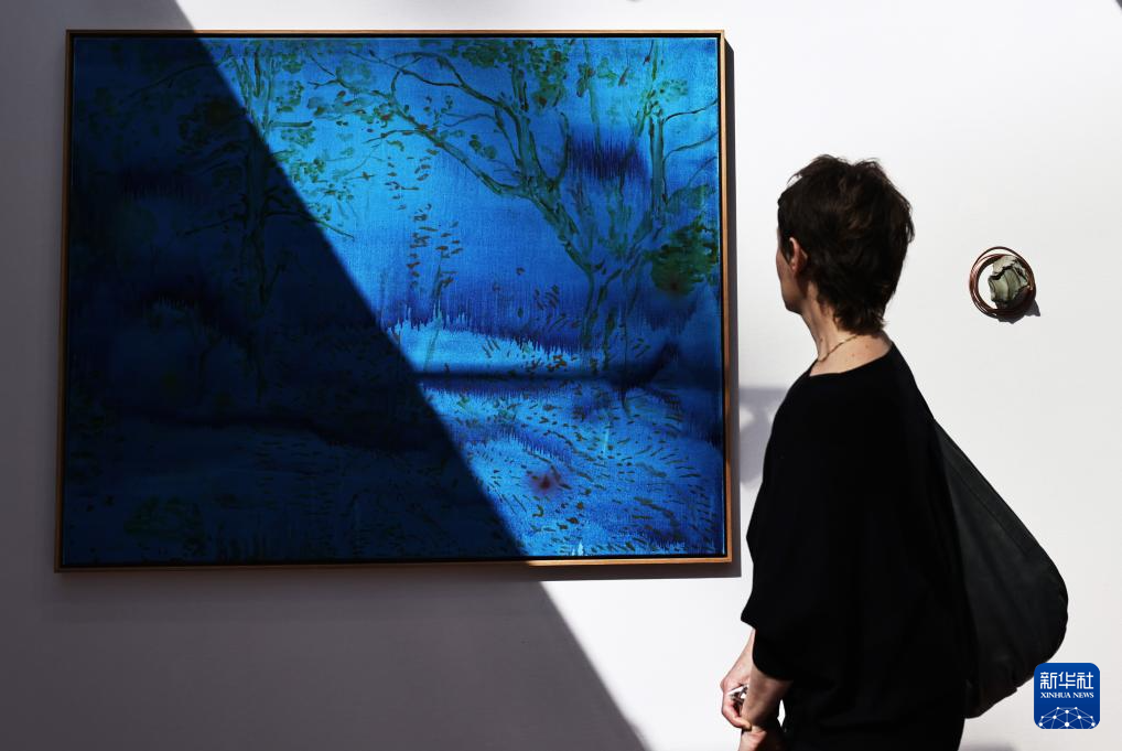4月6日,一名女子在法国巴黎大皇宫举行的2025年巴黎艺术博览会上参观。