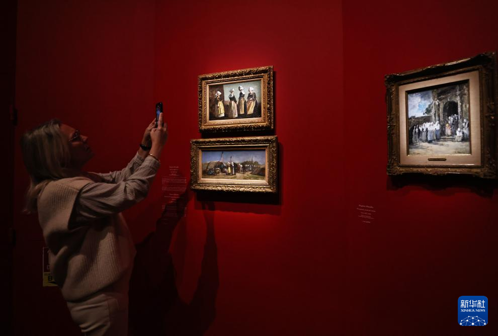 4月8日,在法国巴黎玛摩丹美术馆,一名观众在《“印象派之父”——欧仁·布丹》特展的媒体预展上参观。