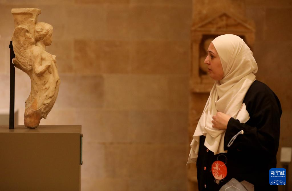 5月18日,观众在黎巴嫩首都贝鲁特参观国家博物馆。