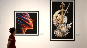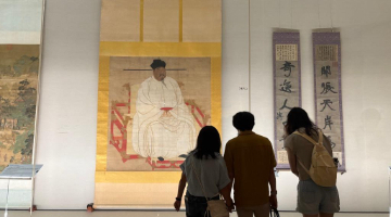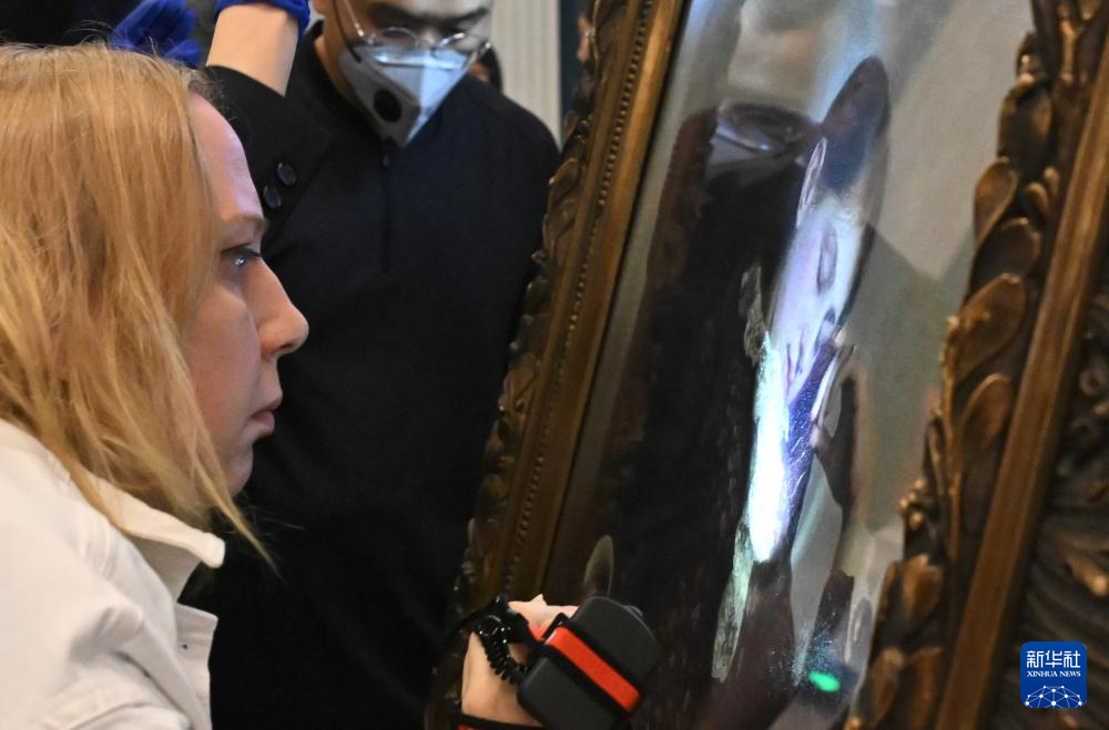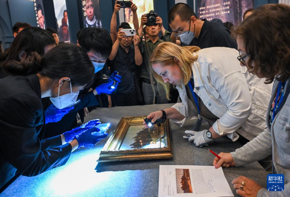 7月16日,工作人员查验列宾画作《伏尔加河上的纤夫》油画草图。