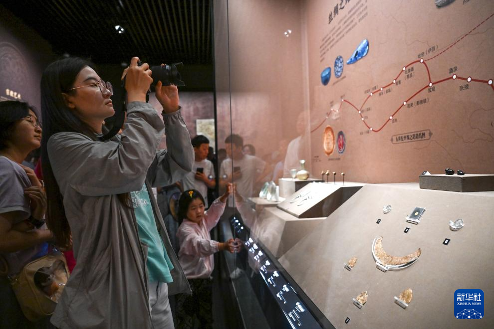 7月30日,游客在内蒙古呼和浩特市内蒙古博物院新馆拍摄展品。