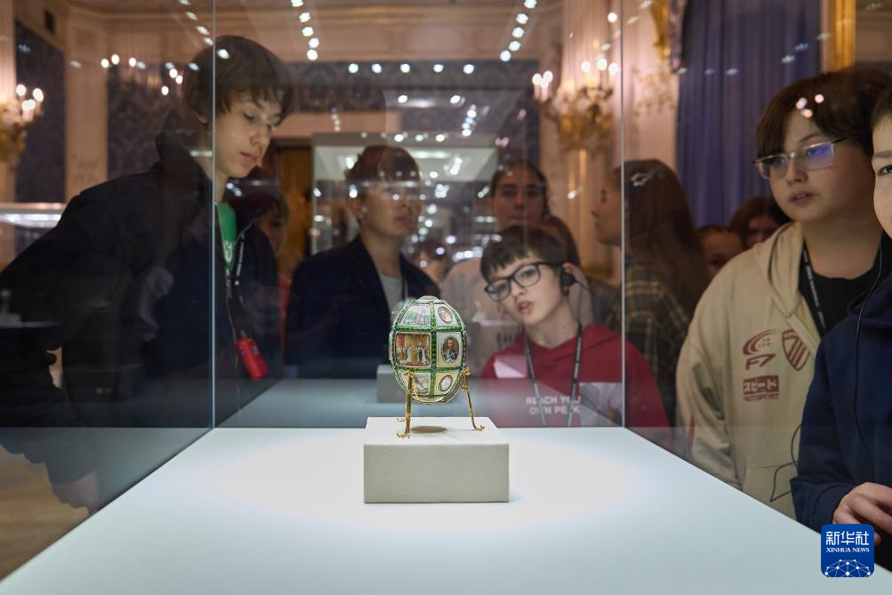 4月7日,人们在俄罗斯圣彼得堡的法贝热博物馆参观。