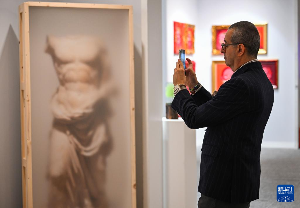 4月15日,在土耳其伊斯坦布尔,观众在土耳其青年当代艺术展预展上参观。