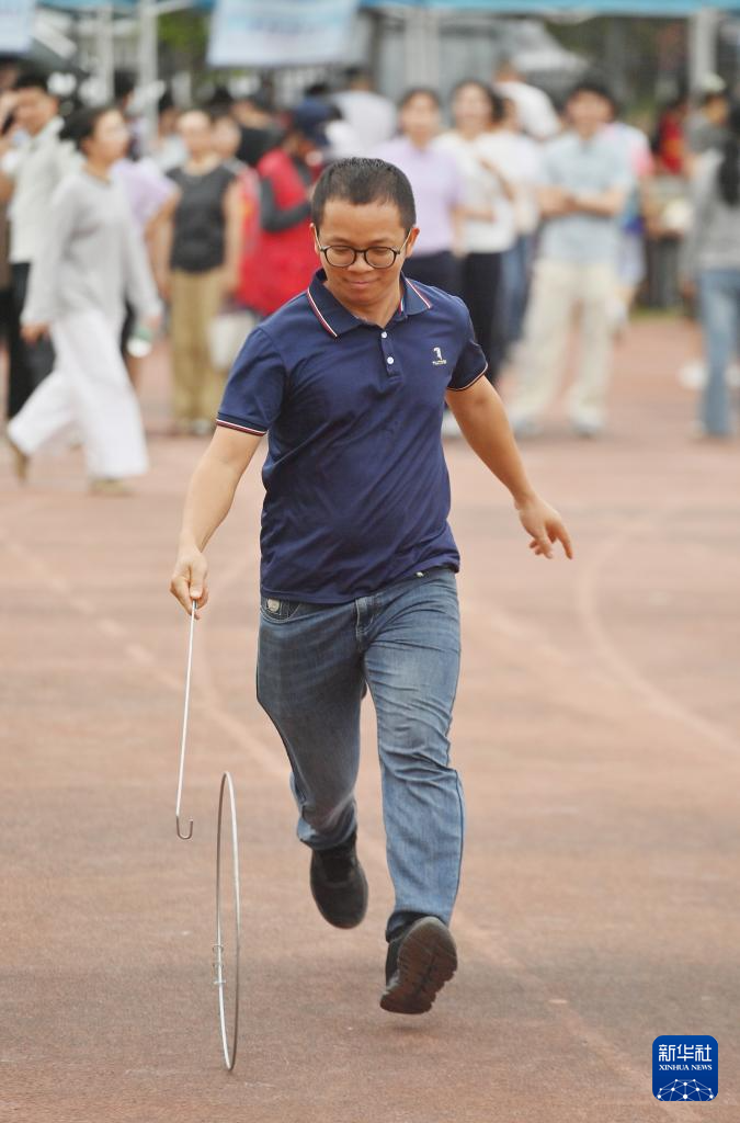 4月15日,广西梧州职业学院举行“三月三”民族传统体育比赛,师生通过板鞋接力、抛绣球、踢毽子、滚铁环等项目,尽享体育运动带来的快乐。