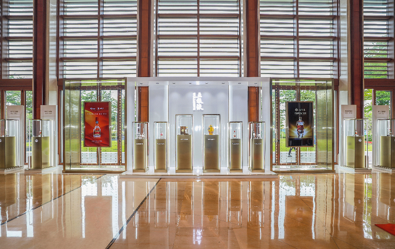 圖為五糧液核心產(chǎn)品盛裝亮相博鰲亞洲論壇2021年年會