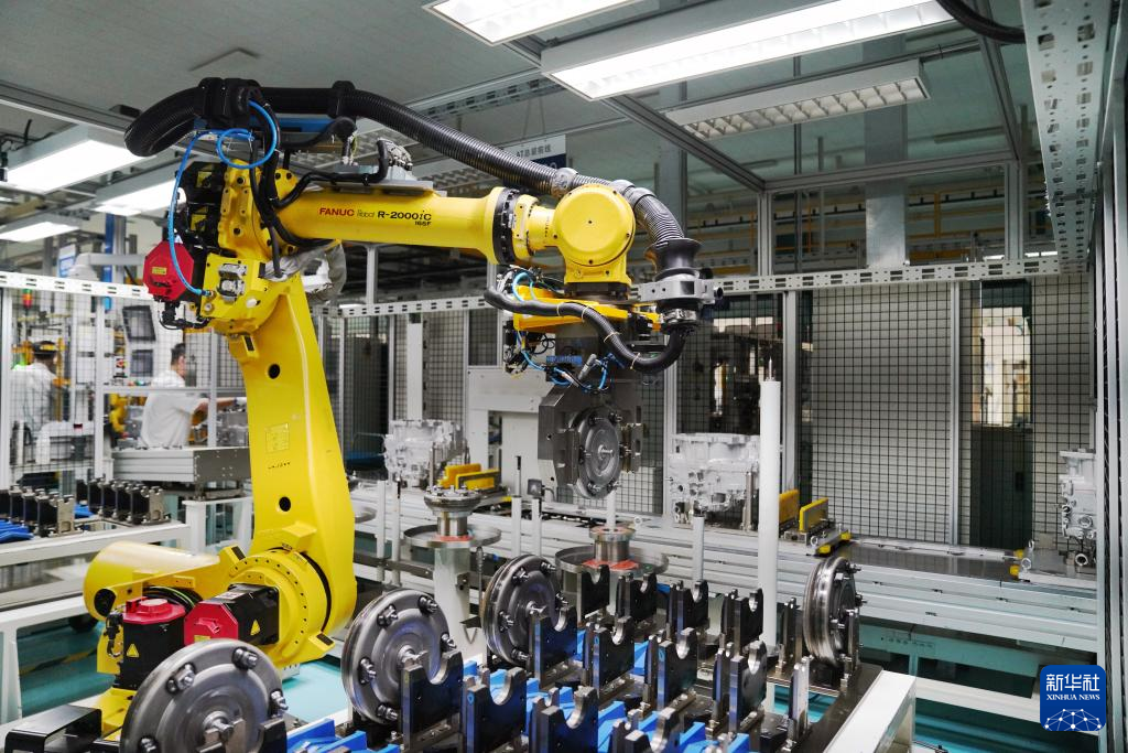 2025年7月24日,在哈尔滨东安汽车动力股份有限公司生产车间,工业机器人在生产作业。