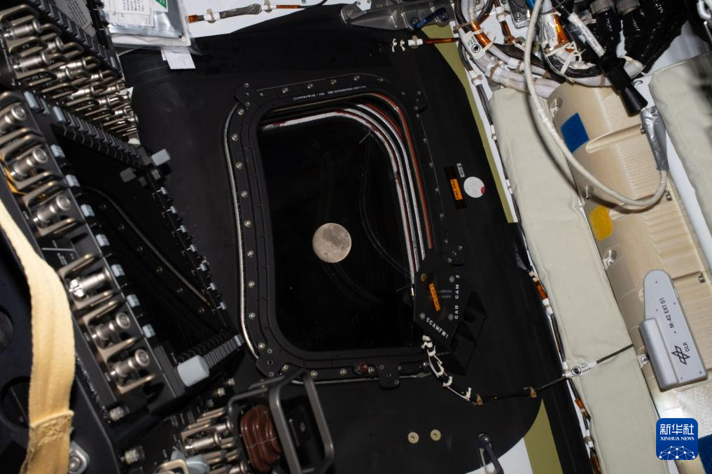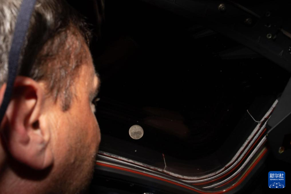 4月6日,美国航空航天局宇航员里德·怀斯曼从执行“阿耳忒弥斯2号”载人绕月飞行任务的“猎户座”飞船上观看月球。
