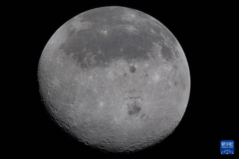 这是从执行“阿耳忒弥斯2号”载人绕月飞行任务的“猎户座”飞船上拍摄的月球(4月6日摄)。