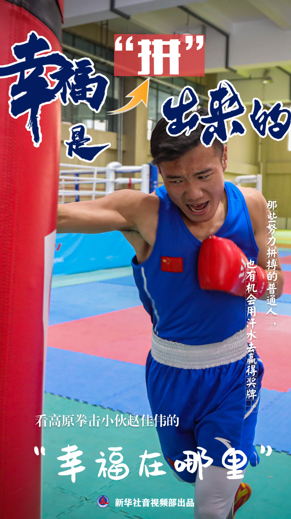 他叫趙佳偉,2001年出生,西寧本地人。自幼愛好體育、喜歡格斗的他,14歲那年開始接觸散打,一年后一次偶然機會被青海省拳擊隊相中,自此邁入拳擊運動的大門。