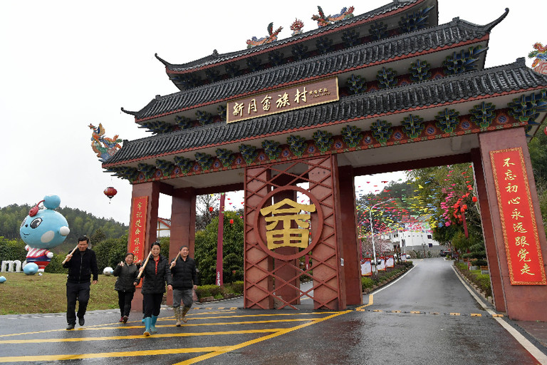 穿過江西省資溪縣烏石鎮(zhèn)新月畬族村牌樓,青山綠樹環(huán)抱村莊,白墻褐瓦的畬寨整齊排列,不時有炊煙飄出。位于閩贛交界處的新月村,過去曾是武夷山區(qū)閉塞落后的“茅棚村”,如今已成為遠近聞名的小康村。