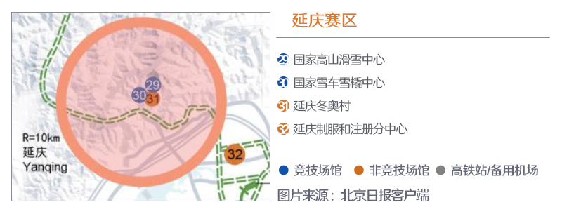 ??? 延慶賽區(qū)將進(jìn)行3個(gè)大項(xiàng)(高山滑雪、雪車、雪橇)、4個(gè)分項(xiàng)(高山滑雪、雪車、鋼架雪車、雪橇)、21個(gè)小項(xiàng)的比賽。