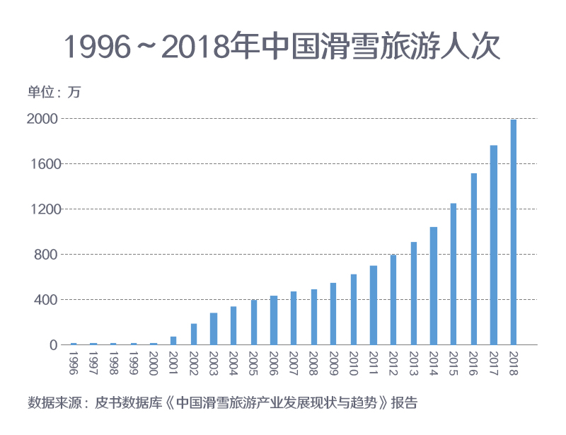 ??? 從1996年發(fā)展至今, 我國滑雪旅游人次實(shí)現(xiàn)了質(zhì)的飛躍。截至2018年底, 我國滑雪人次為1970萬, 同比增長(zhǎng)12.57%。基于龐大的滑雪人次和市場(chǎng)規(guī)模,中國已被認(rèn)為是全球主要滑雪市場(chǎng)之一,年滑雪人次已超過一些擁有成熟滑雪市場(chǎng)的國家。