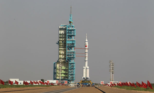 酒泉發(fā)射中心發(fā)射場神舟九號飛船等待發(fā)射