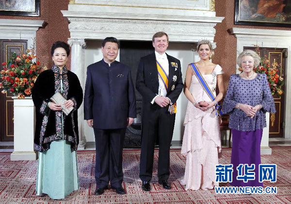 ??? 3月22日,國家主席習(xí)近平在阿姆斯特丹會見荷蘭國王威廉-亞歷山大。當(dāng)晚,威廉-亞歷山大國王在王宮為習(xí)近平舉行盛大國宴。威廉-亞歷山大國王、馬克西瑪王后、貝婭特麗克絲前女王共同迎接習(xí)近平和夫人彭麗媛到來。新華社記者鞠鵬攝