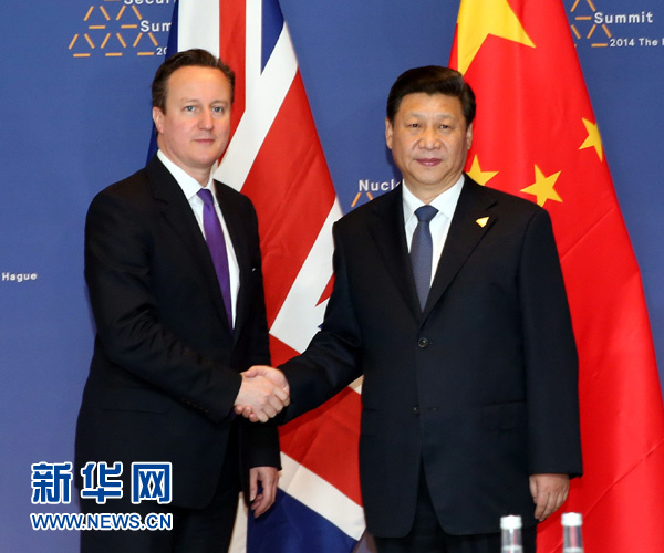 3月25日,國(guó)家主席習(xí)近平在荷蘭會(huì)見(jiàn)英國(guó)首相卡梅倫。新華社記者劉衛(wèi)兵攝