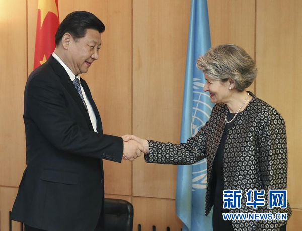 ????新華網(wǎng)巴黎3月27日電(記者尚栩 劉華)國家主席習(xí)近平27日在巴黎聯(lián)合國教科文組織總部會見該組織總干事博科娃。