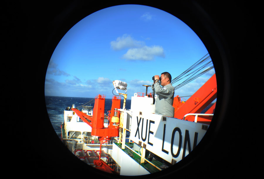 ????經(jīng)中國海上搜救中心同意,“雪龍”號科考船28日下午全速趕往澳大利亞海事安全局最新調(diào)整的搜尋區(qū),并將與“海巡01”會合,進行中方船只現(xiàn)場指揮聯(lián)絡(luò)工作的交接。根據(jù)國際調(diào)查團隊向澳方提出的建議,澳大利亞海事安全局28日調(diào)整了搜索部署,搜尋范圍發(fā)生較大改變。新華社記者張建松攝