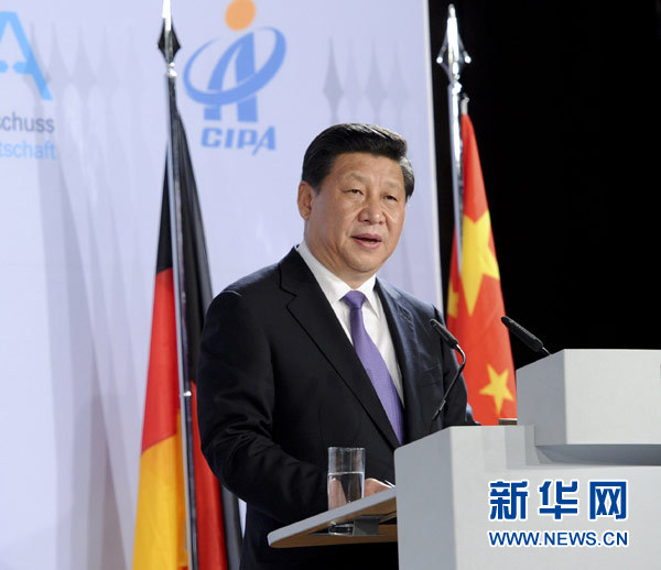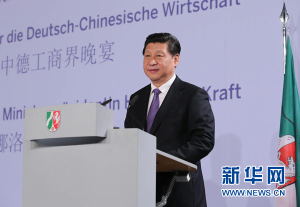 ??? 3月29日,國(guó)家主席習(xí)近平在杜塞爾多夫出席中德工商界舉行的招待會(huì)并發(fā)表題為《把握中國(guó)機(jī)遇,實(shí)現(xiàn)共同發(fā)展》的重要講話。新華社記者劉衛(wèi)兵攝