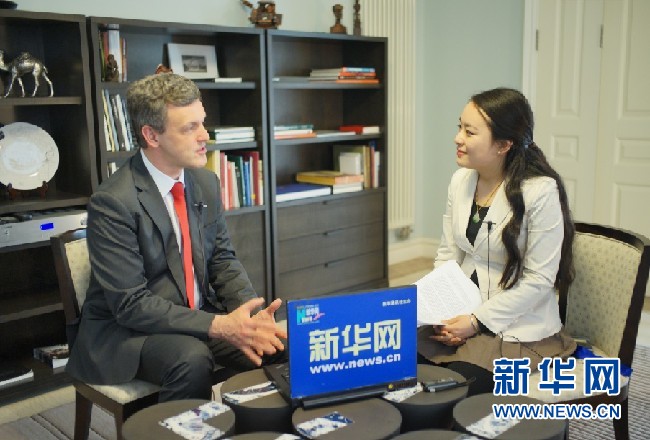 比利時(shí)王國(guó)駐華大使馬懷宇接受新華網(wǎng)專訪。新華網(wǎng)記者郭小天攝