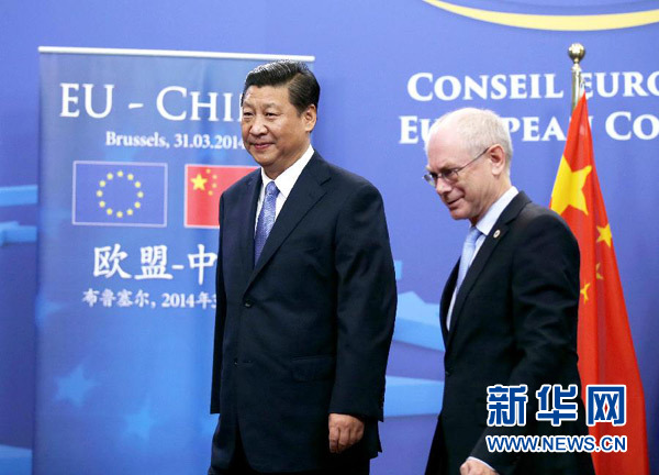????3月31日,國(guó)家主席習(xí)近平在比利時(shí)布魯塞爾同歐洲理事會(huì)主席范龍佩舉行會(huì)談。 新華社記者 鞠鵬 攝