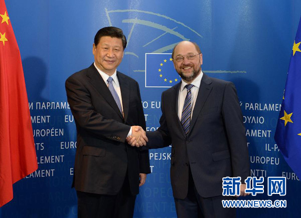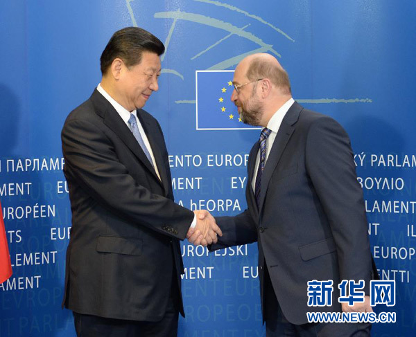 ????3月31日,國家主席習(xí)近平在比利時布魯塞爾會見歐洲議會議長舒爾茨。 新華社記者 馬占成 攝