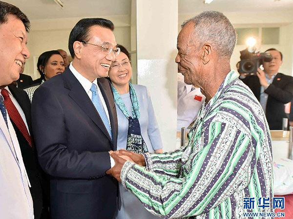 ??? 5月6日,中國(guó)國(guó)務(wù)院總理李克強(qiáng)與埃塞俄比亞總統(tǒng)穆拉圖一同來到亞的斯亞貝巴阿勒塔醫(yī)院,看望受益于中國(guó)免費(fèi)白內(nèi)障手術(shù)“光明行”活動(dòng)的埃塞俄比亞患者。新華社記者李濤攝