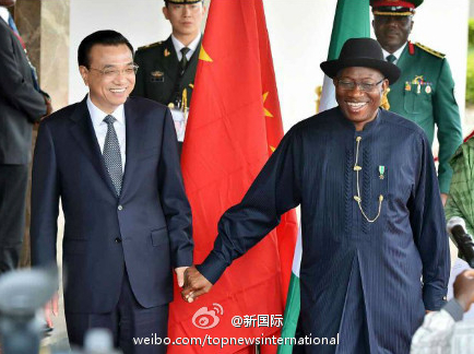 ????新華網(wǎng)北京5月7日電 據(jù)新華社“新國際”微博報道,李克強總理7日與尼日利亞總統(tǒng)喬納森舉行會談。喬納森說:尼日利亞不久前遭受恐怖主義襲擊,安全形勢嚴峻!絕大多數(shù)國家領(lǐng)導(dǎo)人不愿意這個時候訪問尼日利亞,感謝您這次如期到訪,展現(xiàn)了中國是尼日利亞真正的朋友,患難見真情。
